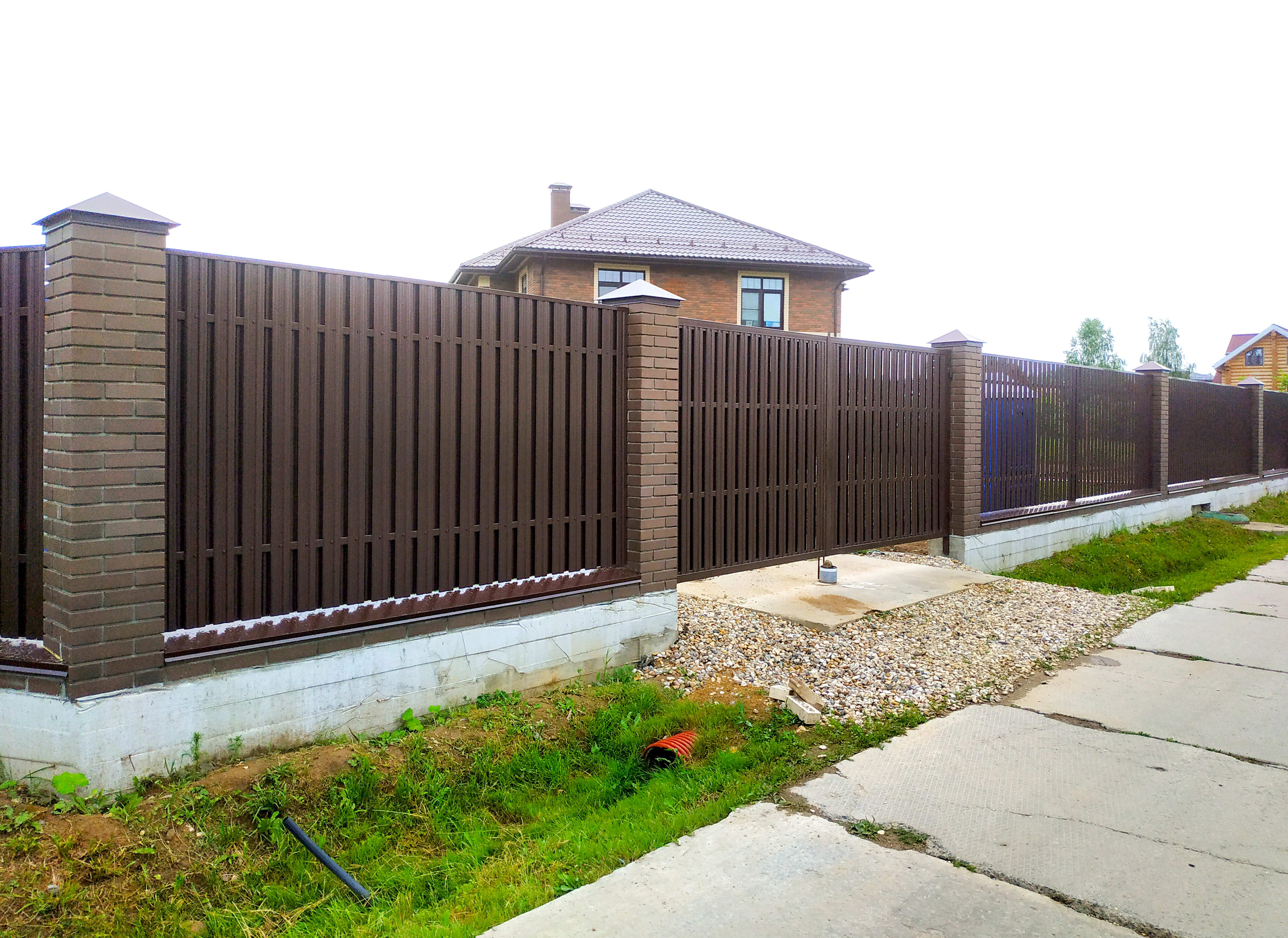 Заборы и ограждения из евроштакетника с кирпичными столбами 100 метров в Протвино