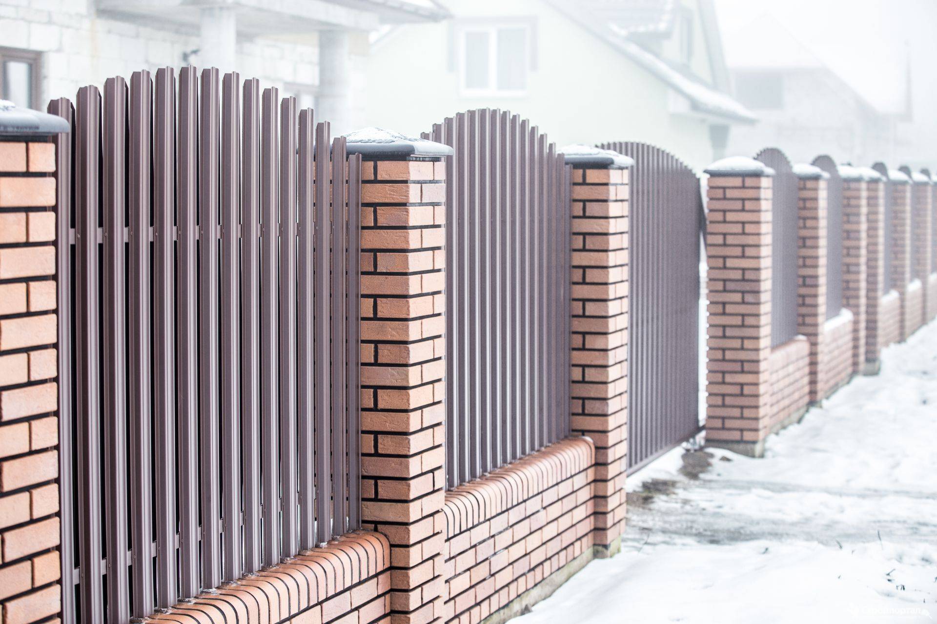 Заборы и ограждения из евроштакетника с кирпичными столбами 40 метров в Протвино