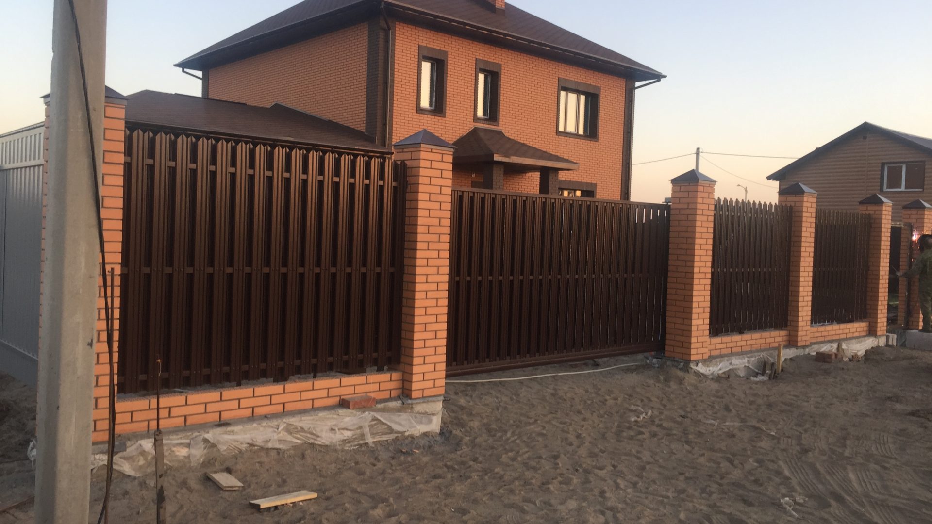 Заборы и ограждения из евроштакетника с кирпичными столбами 500 метров в Протвино