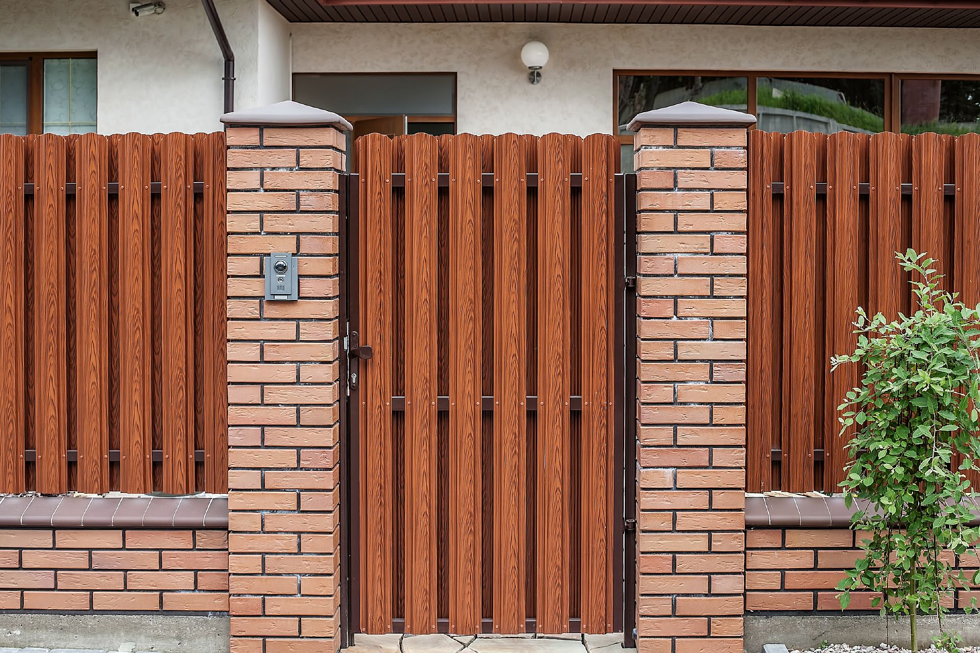 Заборы и ограждения из евроштакетника с кирпичными столбами 15 соток в Протвино