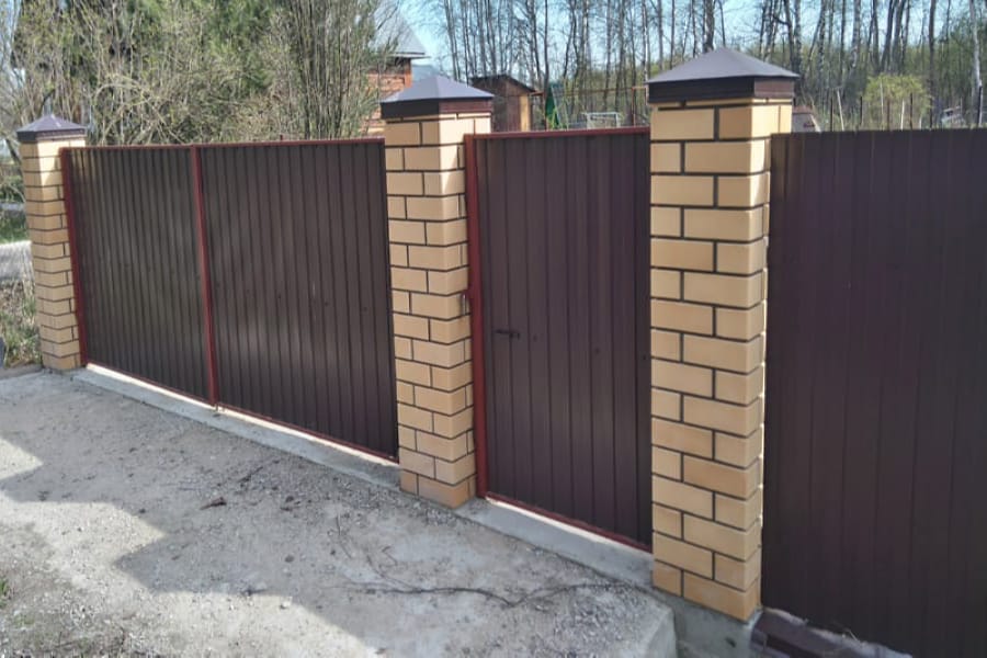 Заборы и ограждения из профнастила с кирпичными столбами 300 метров в Протвино