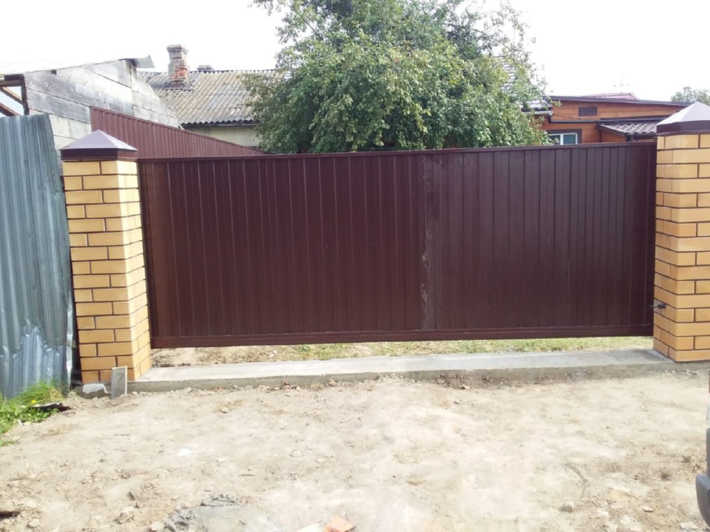 Заборы и ограждения из профнастила с кирпичными столбами 40 метров в Протвино