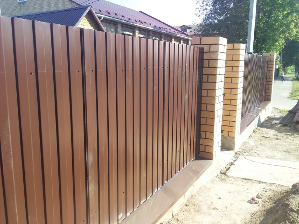Заборы и ограждения из профнастила с кирпичными столбами 15 соток в Протвино