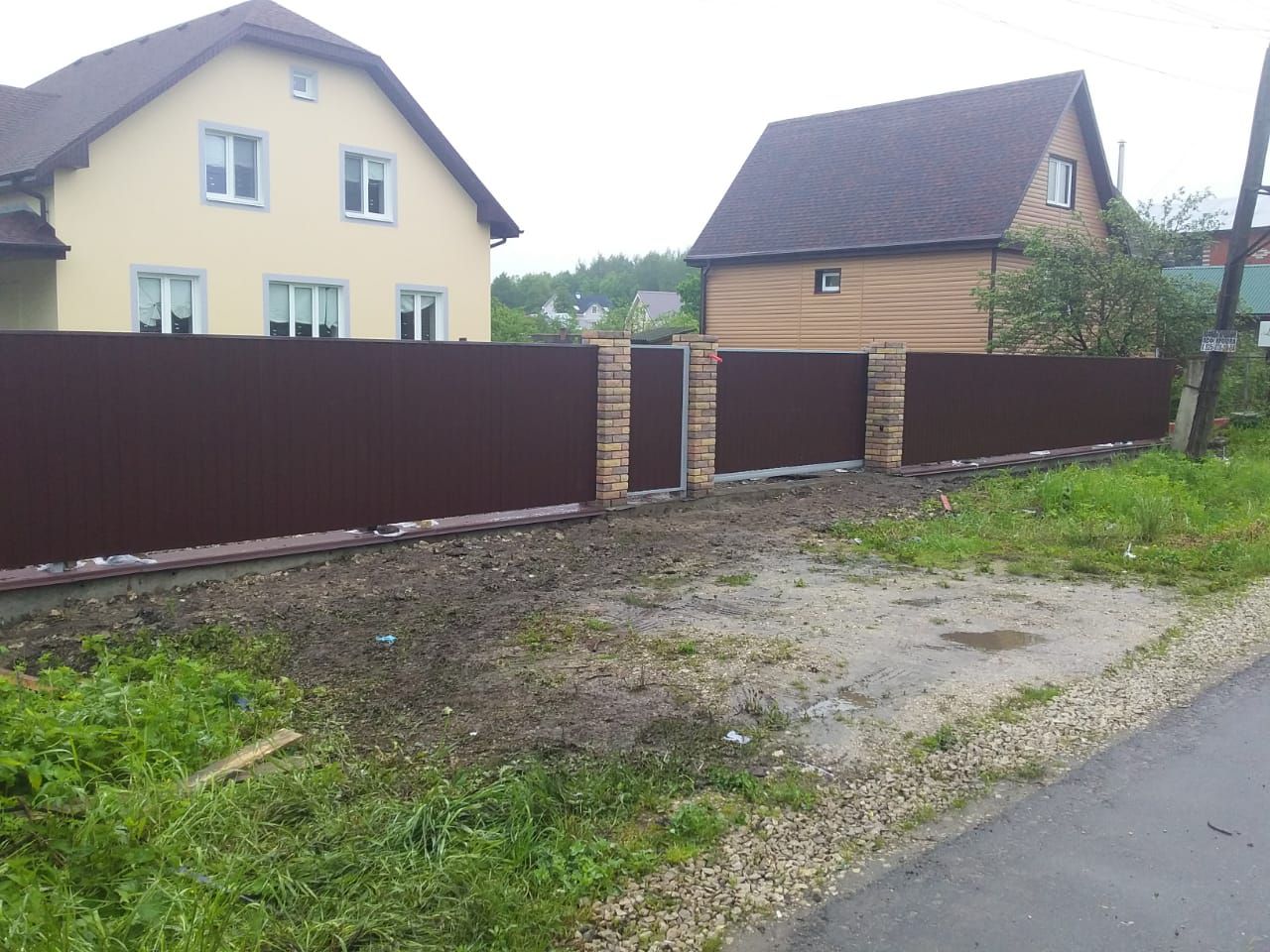 Заборы и ограждения из профнастила с кирпичными столбами 30 соток в Протвино